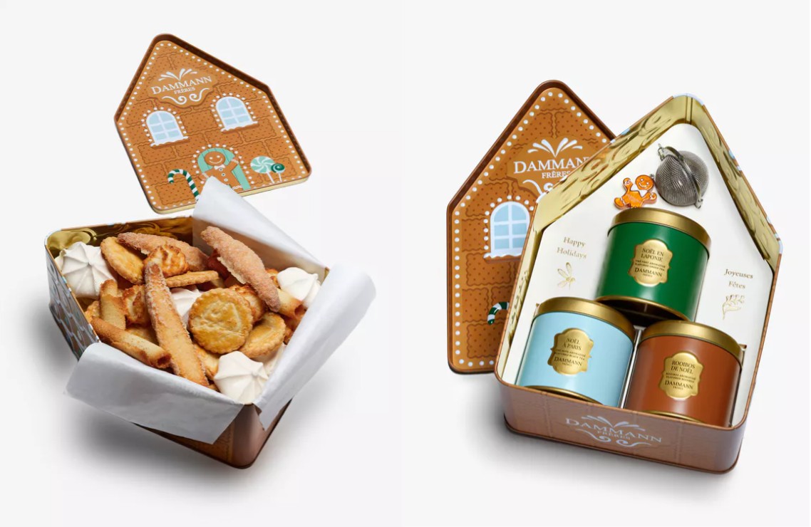 Ce charmant coffret en métal orné d’un décor de maison en pain d’épices réunit trois mélanges aromatisés aux saveurs de Noël. Il contient trois boîtes de 40 g pour deux thés et une infusion de fêtes, ainsi qu’une boule à thé fantaisie. Le petit plus : il se transformera en boîte à biscuits dans laquelle vous pourrez présenter et conserver de délicieux gâteaux de Noël faits maison !