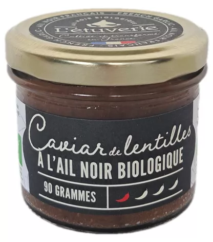 Découvrez notre caviar de lentilles à l’ail noir et piment, une tartinade savoureuse qui met en valeur des ingrédients simples et naturels. Les lentilles apportent une texture douce et agréable, tandis que l’ail noir révèle une note ronde et légèrement sucrée. Le piment, ajouté avec justesse, vient compléter l’ensemble sans dominer, offrant une belle harmonie de saveurs.