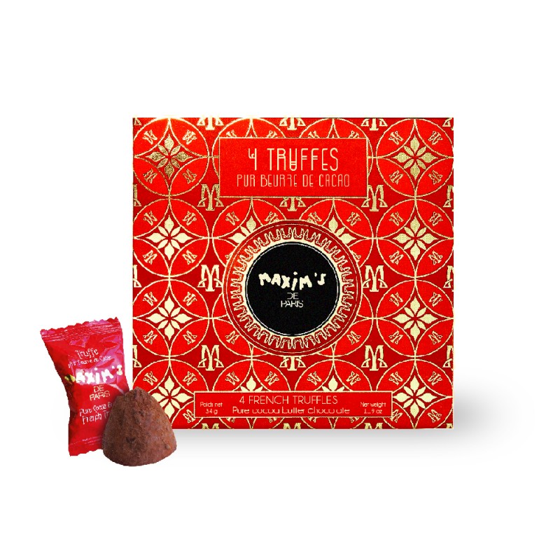 Ne négligez pas le plaisir d’une petite attention. Délicatement saupoudrées de poudre de cacao, les truffes pur beurre de cacao Maxim’s vous offrent le plaisir fondant et onctueux du chocolat dans son expression la plus gourmande. Offrez un petit cadeau original et savoureux ! Les truffes au chocolat Maxim’s sont délicieuses et savoureuses ! Ce sublime étui de 4 truffes vous procurera un plaisir immense ! A emporter partout, il est idéal et se glisse très facilement dans un sac. N’hésitez pas non plus à offrir ces délicieuses truffes au chocolat. Les petits comme les grands adoreront son gout prononcé de cacao. Les truffes sont emballées individuellement afin de vous garantir une fraicheur et une qualité optimale. Poids Net 34 g.