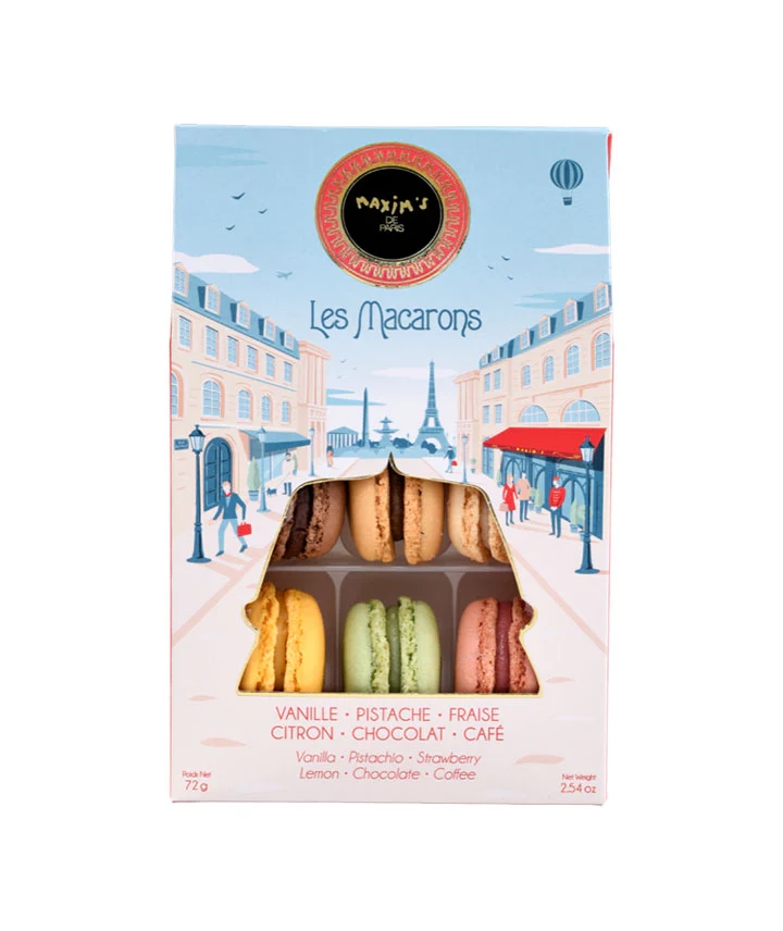 Parfait définition de l’Art de Vivre à la Française, le macaron est sans conteste l’un des symboles pâtissiers les plus convoités de Paris. Découvrez les macarons Maxim’s, déclinés en 6 saveurs : vanille, pistache, fraise, citron, chocolat et café. Gourmand et fruités, il y en aura pour tous les goûts !