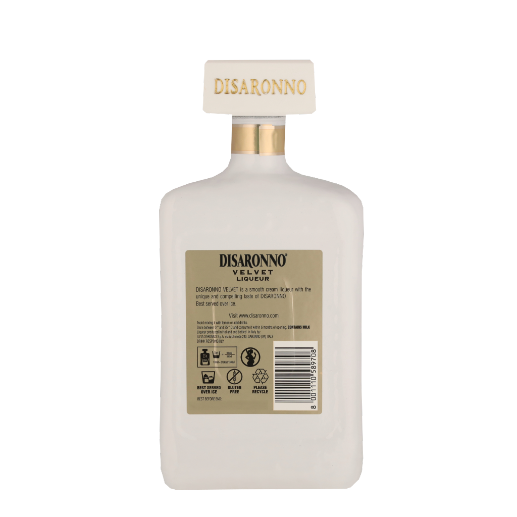 En ouvrant une bouteille de Disaronno Velvet, vous êtes accueilli par un arôme séduisant d’amandes et de vanille crémeuse. La première gorgée vous surprend avec sa texture douce, où les saveurs des amandes grillées et de la crème veloutée se marient parfaitement. Une subtile note de sucre caramélisé ajoute une dimension supplémentaire, rendant cette liqueur idéale à déguster pure ou comme ingrédient dans des cocktails.                                                                                                                                                                                                                                                                                                                    La production de Disaronno Velvet commence par les meilleures amandes sélectionnées, qui sont combinées avec des ingrédients naturels tels que le lait et la crème. Le mélange est soigneusement mélangé et pasteurisé pour créer l’équilibre parfait des saveurs. Le résultat est une liqueur luxueuse qui se distingue par sa texture crémeuse et son goût raffiné.