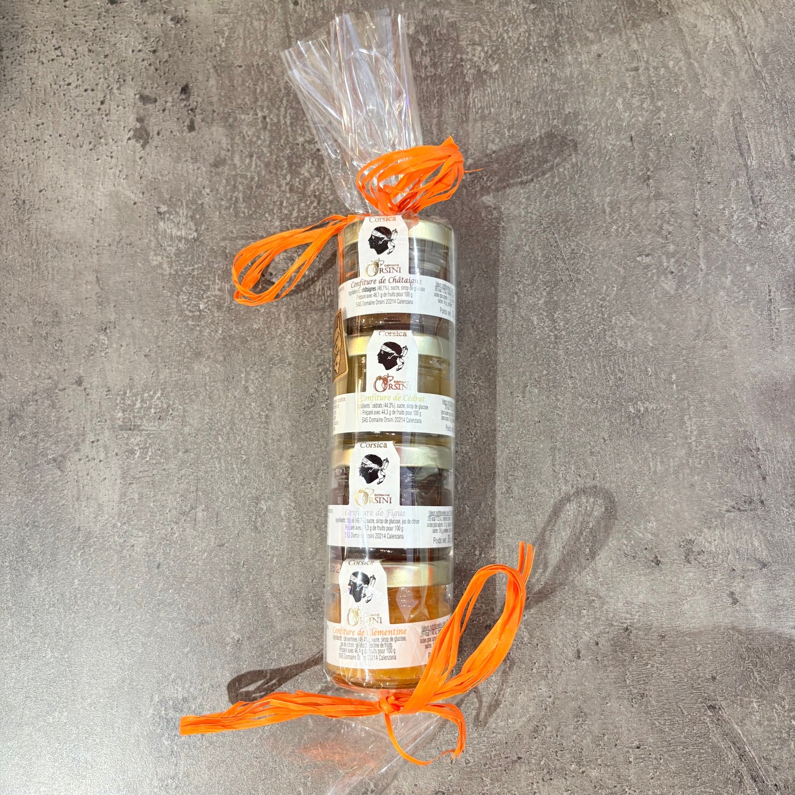4 X 0.54g , figues, clémentines, Cédrats, Châtaignes, Une sélection des meilleurs fruits de la Corse , emballage boutique en forme de bombons, un petit cadeau pour un petit déjeuner a « l’usu Corsu »