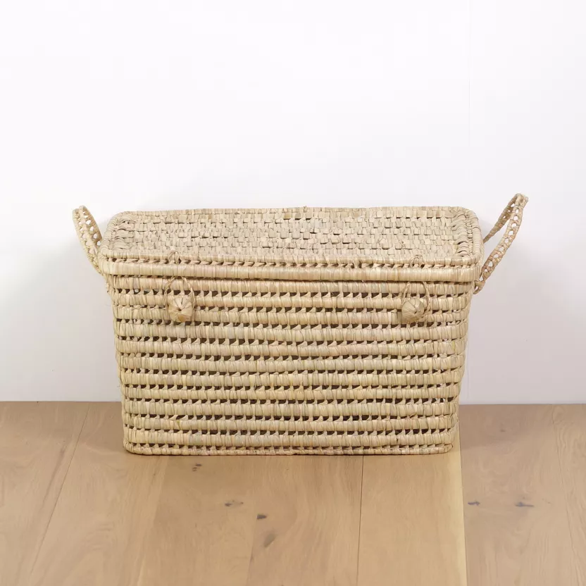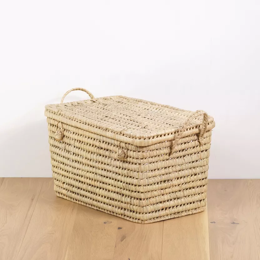 La malle de rangement en feuilles de palmier est l’objet déco idéal pour votre intérieur. En plus d’apporter une touche naturelle, elle est pratique et originale pour y ranger les plaids, le linge de maison ou les jouets des enfants. A installer dans la chambre de votre petit bout ou partout dans la maison ! 2 poignées de chaque côté, fermeture facile grâce aux boutons.