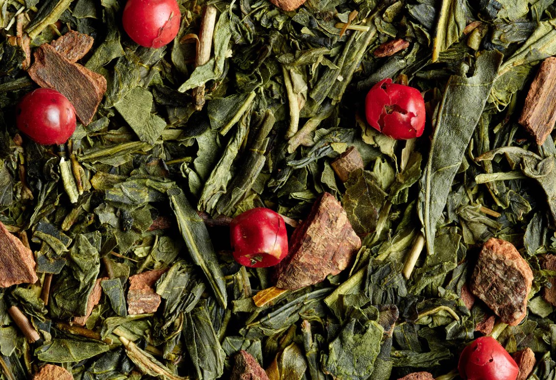 Thé vert | Baie rose, Cannelle, Canneberge, Orange  Les 100g   / 25 sachets