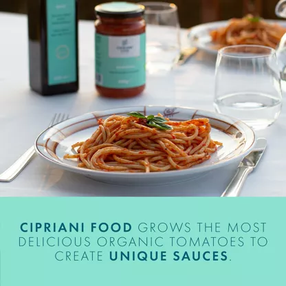 La sauce Sansovina Cipriani contient l’essence des saveurs méditerranéennes, élaborée avec des ingrédients biologiques de haute qualité. En plus des tomates mûres, cette sauce est enrichie de la douceur naturelle des oignons et des carottes, qui rehaussent sa profondeur de saveur. Le basilic aromatique élève encore le profil de saveur, offrant une symphonie de saveurs dans chaque cuillerée.